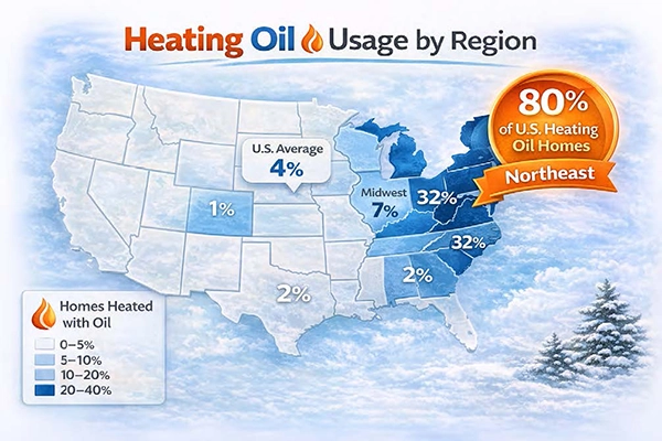 In the Northeast, home comfort looks a little different — because nearly one in three homes still relies on heating oil to stay warm in winter. While the national average sits around 4%, our region accounts for more than 80% of all U.S. heating oil households.